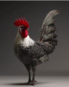 seekor ayam jantan dengan bulu berpola hitam putih yang sangat khas dan jengger merah mencolok. Ayam seperti ini biasanya merupakan jenis ayam kampung atau ayam hias yang sering dipelihara karena keindahan bulunya. Pose dan pencahayaannya tampak dibuat secara profesional, seperti untuk keperluan fotografi produk atau majalah peternakan unggas.